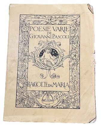 In 4°; XV, (1), 173, (3) pp. e una c. di tav. in antiporta con ritratto fotografico di Giovanni Pascoli. Brossura editoriale illustrata da De Carolis. Antica firma dappartenenza di noto personaggio pugliese alla brossura ed al frontespizio della prima opera. Esemplare ancora in barbe. Prima edizione di questa celebre raccolta di poesie del grande poeta Giovanni Pascoli (San Mauro di Romagna in provincia di Forlì-Cesena, 31 dicembre 1855 Bologna, 6 aprile 1912). Esemplare che presenta alcune leggere fioriture alle prime 8 carte ed in alcune carte allinterno, dovute alla qualità della carta utilizzata ma per il resto, esemplare in buone condizioni di conservazione. Prima edizione non comune.