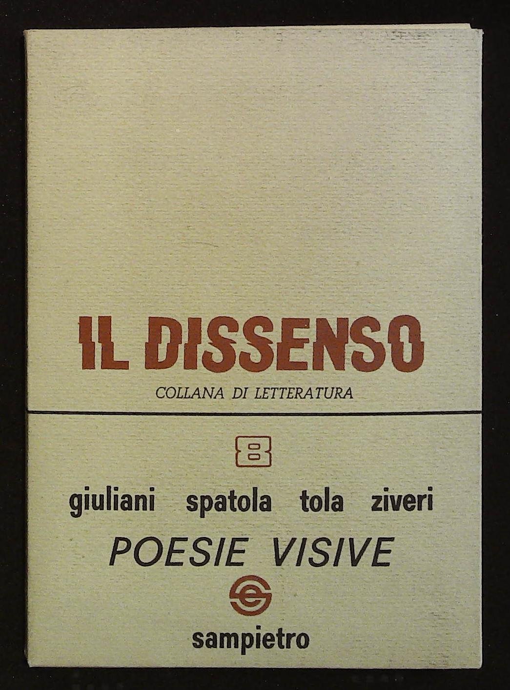 in 16° 22 fogli sciolti in cartellina morbida e astuccio a baionetta. Primi 7 fogli su cartoncino ospitano i testi, 14 su carta lucida le opere, infine scheda editoriale coll. Il Dissenso n° 8 / Collana di letteratura Il Dissenso n 8 In ottimo stato