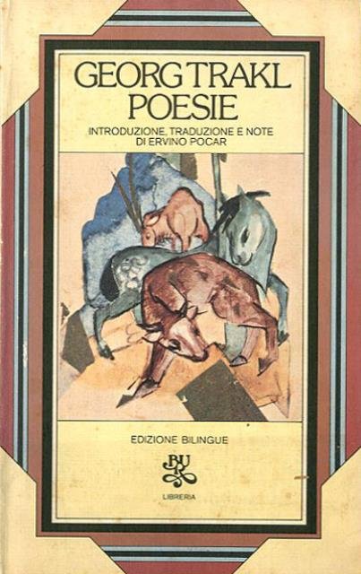 165 p. ; 21 x 13 cm. BUR. Poesia. La poesia di del "poeta maledetto" Traki è esprime un mondo chiuso e compatto, che crea in sé le proprie leggi, il proprio linguaggio, con pochi elementi fondamentali sempre ricorrenti, e filtrati attraverso un'assidua sperimentazione (come si può constatare dalle numerose varianti dele composizioni), fino a risultati di assoluta purezza lirica. Nonostante l'influsso di Dostoevskij, Baudealaire e Rimbaud, Traki è un poeta profondamente originale, che si sottrae ad ogni precisa definizione di scuola o di tendenza: decadentismo, espressionismo, simbolismo. nessuna di queste etichette gli si adatta in pieno. Introduzione, traduzione e note di Ervino Pocar. Edizione bilingue. Brossura editoriale, coperta illustrata a colori in cartoncino flessibile. Qualche segno del tempo alla coperta, pagine interne leggermente ingiallite per il resto libro in buono stato. Codice libreria 3667.