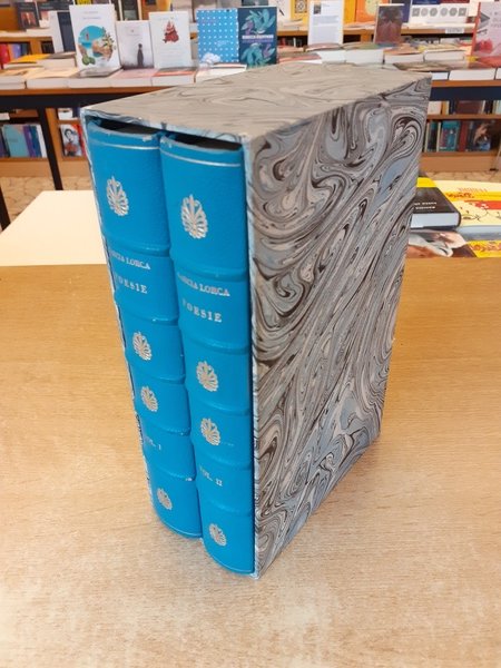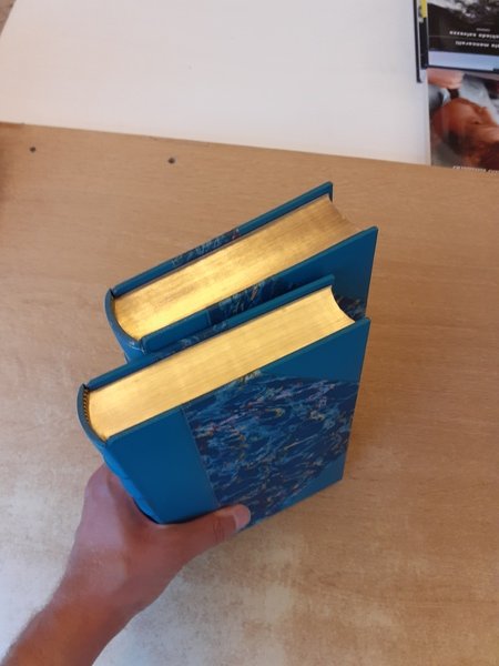 Rilegatura Rigoldi in pelle e carta marmorizzata con custodia. Taglio superiore con 19 passaggi d'oro.