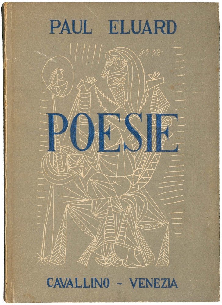 Mm. 239x168. Pp. 155 e sei tavole fuori testo (cinque ritratti ed un autografo di Eluard). Cartonato editoriale. Traduzione di Gennaro Masullo, Leone Traverso e Aldo Camerino. Prefazione “Poesia involontaria e poesia intenzionale” di Eluard. Prima edizione di 2000 copie numerate (la presente è la numero 375).