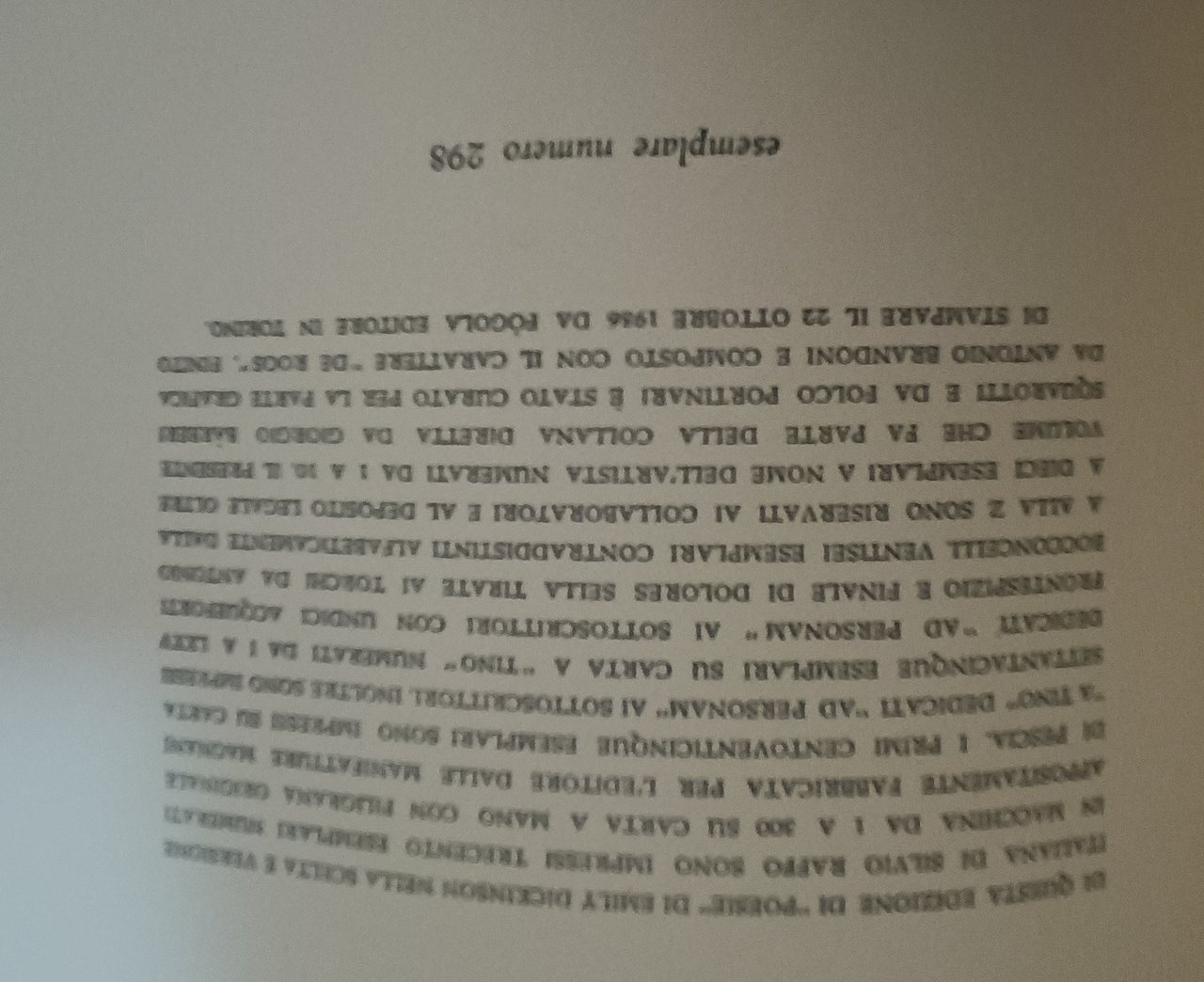 Cartonatura rigida editoriale con titoli in nero al dorso e al piatto anteriore, sovracoperta e custodia. Segnalibro in betulla figurato. Tiratura di 300 esemplari in numerazione araba, più 75 in numerazione romana. Esemplare intonso. Questa è la n. 298.