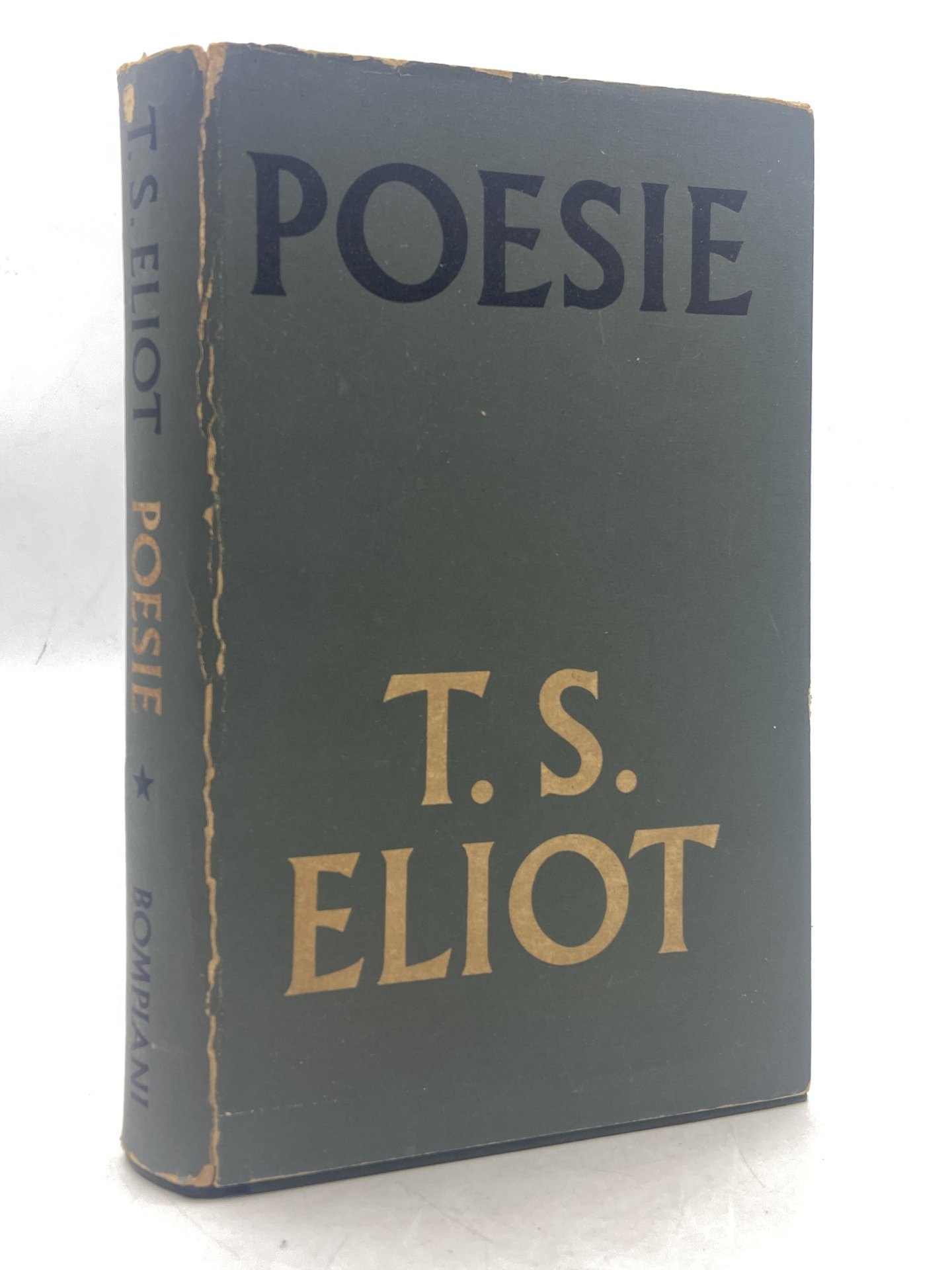 Tela editoriale con sovraccoperta (un poco usurata), cm 20.5 x 12. 5, pp 287 (9). Prima edizione di questa antologia di poesie di T. S. Eliot a cura e con traduzione di Roberto Sanesi; con una nota di Eliot all'edizione italiana.