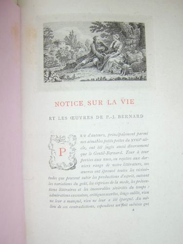 Avec une notice bio-bibliographique par Fernand Drujon, un des 50 exemplaires sur Chine numérotés, portrait de Gentil-Bernard et une vignette, gravée par Gaujean, hors-texte, 1 vol. in-8 br., couv. rempliée, coll. Petits Poètes du XVIIIe siècle, A. Quantin, Paris, 1884, 2 ff., XX-365 pp. et 1 f. n. ch. Un des 50 exemplaires sur Chine numéroté, avec 2 suite des des gravures. Bon état (rouss.). Vicaire, VI, 747