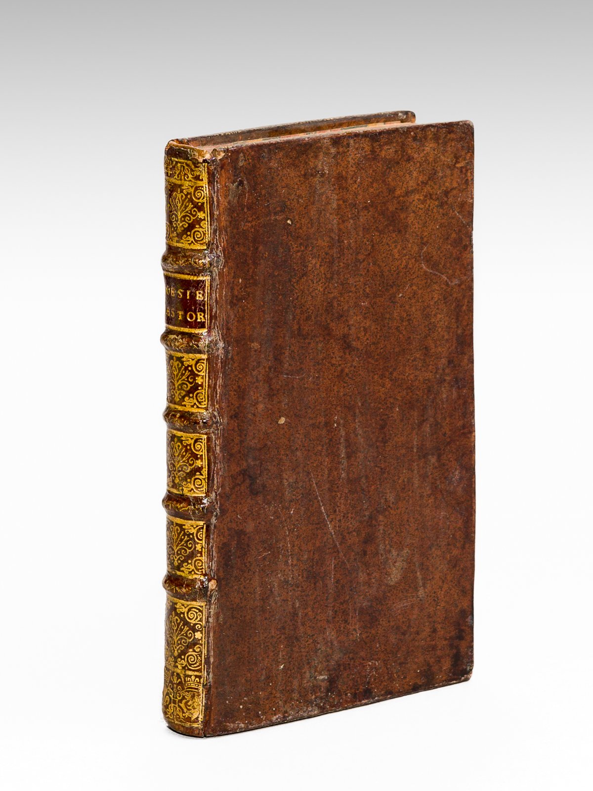 Seconde Edition, augmentée, 1 vol. in-12 reliure de l'époque pleine basane racinée, Chez Michel Brunet, Paris, 1698, 4 ff., 279 pp. et 8 ff. n. ch. La table des matières est suivie d'un "Catalogue des livres nouveaux qui se vendent chez Michel Brunet". Cette seconde édition n'est pas signalée par Tchemerzine, qui signale seulement la réimpression de 1715 (Tchemerzine, V, 323). Dans sa digression, Fontenelle est partisan des modernes. Etat très satisfaisant (petit mq. en coiffes sup., assez fortes mouill. angulaires en début en fin d'ouvrage).