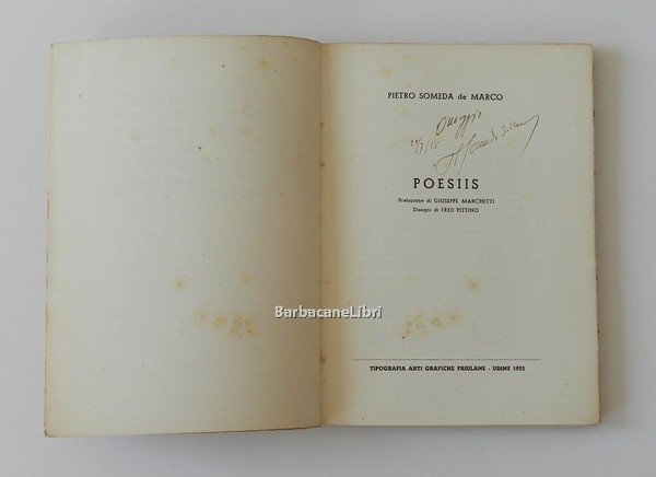 Stato di conservazione: BUONO, copertina con tracce d'uso e del tempo (strappetti ai margini), dorso con segni di piegatura ma legatura solida (recentemente restaurata e reincollata), fioriture, autografo dell'autore al frontespizio. Prefazione di Giuseppe Marchetti.