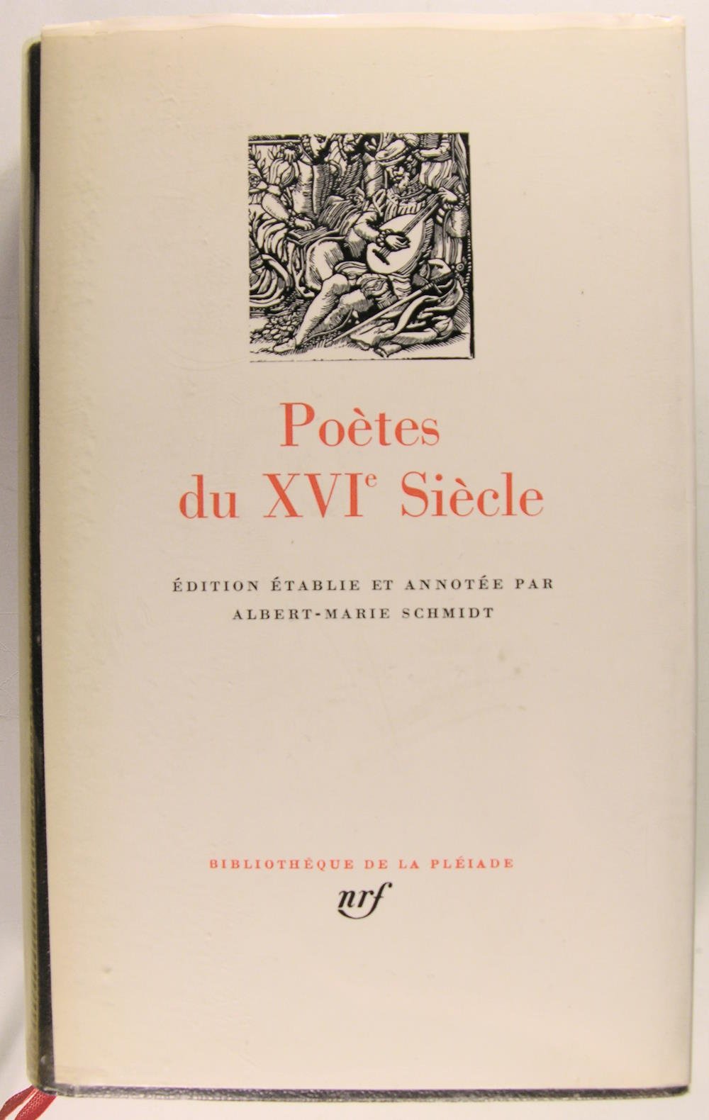 Bibliothèque de la Pléiade, N° quatre vingt-seize de la bibliothèque de la pléiade, nfr, 1979, in/8 reliure éditeur, jaquette, Rhodoïd, 1102 pages. Edition établie et annotée Albert-Marie Schmidt Clément Marot - Maurice Sceve - Pernet du Guillet - Louise Labé - Blasons du corps féminin - Pontus de Tyard - Joachim du Bellay - Rémy Belleau - Étienne de La Boétie - Étienne Jodelle - Jacques Grévin - Guillaune de Salluste du Bartas - Philippe Desportes - Marc de Papillon de Lasphrise - Jean de Sponde - Jean-Batiste Chassignet - Poésie mesurée.Glossaire