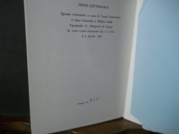 ALL'INSEGNA DEL PESCE D'ORO 1967 BROSSURA 12 X 9 PP. 63 TIRATURA DI 1000 ESEMPLARI COPIA N. 613 - BUONE CONDIZIONI, PIATTI/DORSO BRUNITI.
