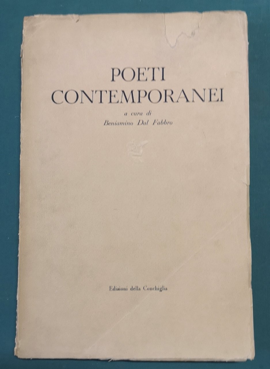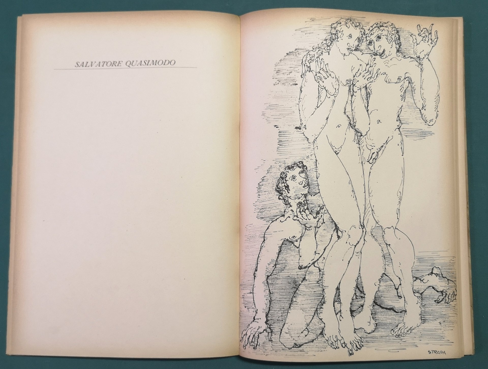 >in-4, pp. pp. (148), con 10 tavole in nero da disegni originali di Nino Strada. Broch. edit (usurata e con minima mancanza alla scuffia sup.) Tiratura di 200 esemplari non numerati, su carta normale, in carattere Paganini tondo e corsivo corpo 18 da Giovanni Battista Testerini su impaginazione di Giampiero Giani. I disegni di Strada sono stati realizzati per questa edizione ad illustrare i testi di Montale, Saba, Campana, Roccatagliata Ceccardi. Ottavo e ultimo volume della collana Poeti antichi e Moderni curata da Luciano Anceschi e Salvatore Quasimodo. Buon esemplare.