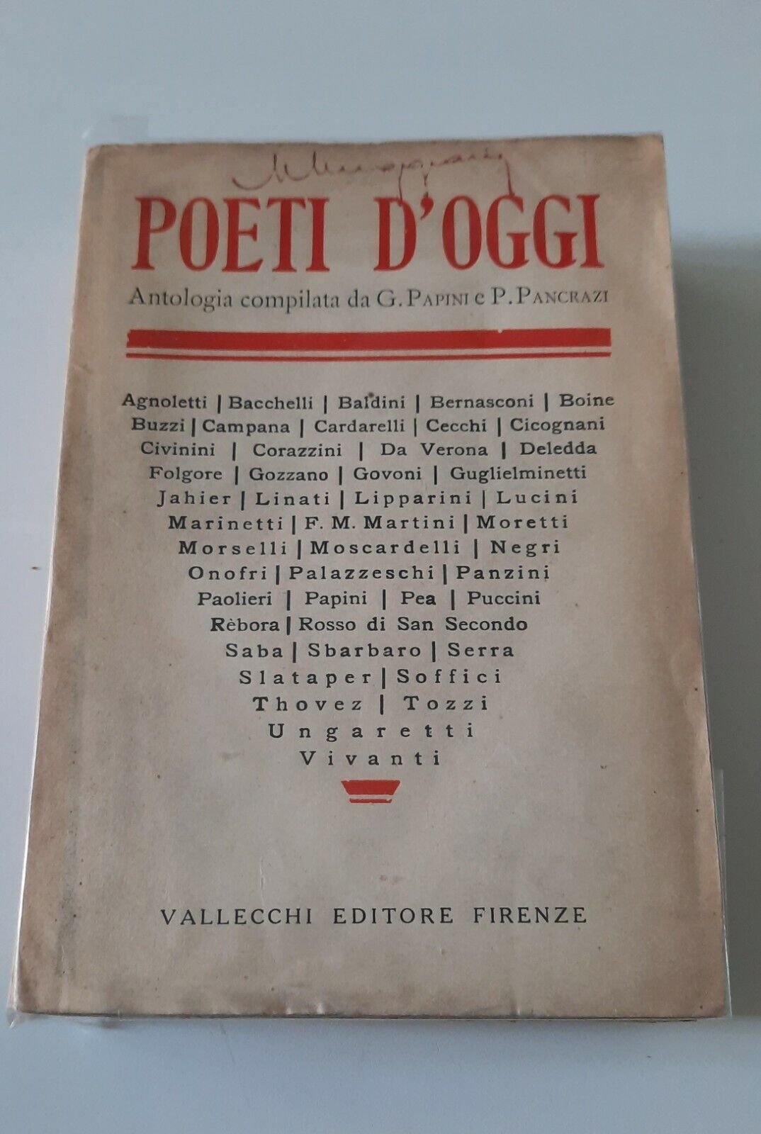 POETI D'OGGI ANTOLOGIA COMPILATA DA G. PAPINI E P. PANCRAZI VALLECCHI 1920