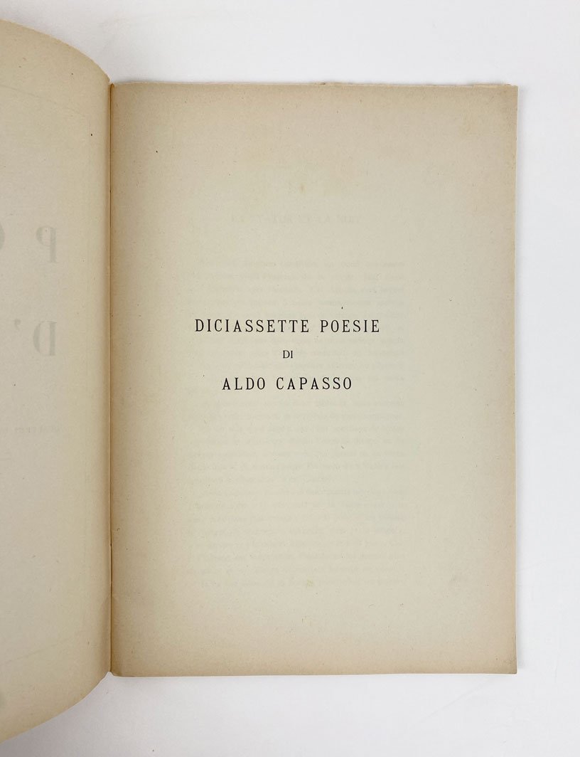 LIBROPrima edizione.Normali segni del tempo alla brossura, lievemente brunita. Pagine interne pulite, con segni di attenzione a matita.Non comune fascicolo “monografico” della rivista di poesia «Poeti d’oggi», in cui sono pubblicate diciassette liriche di Aldo Capasso, introdotte da un breve testo in francese di Jean Grenier. Una sola attestazione nell’Opac Sbn.