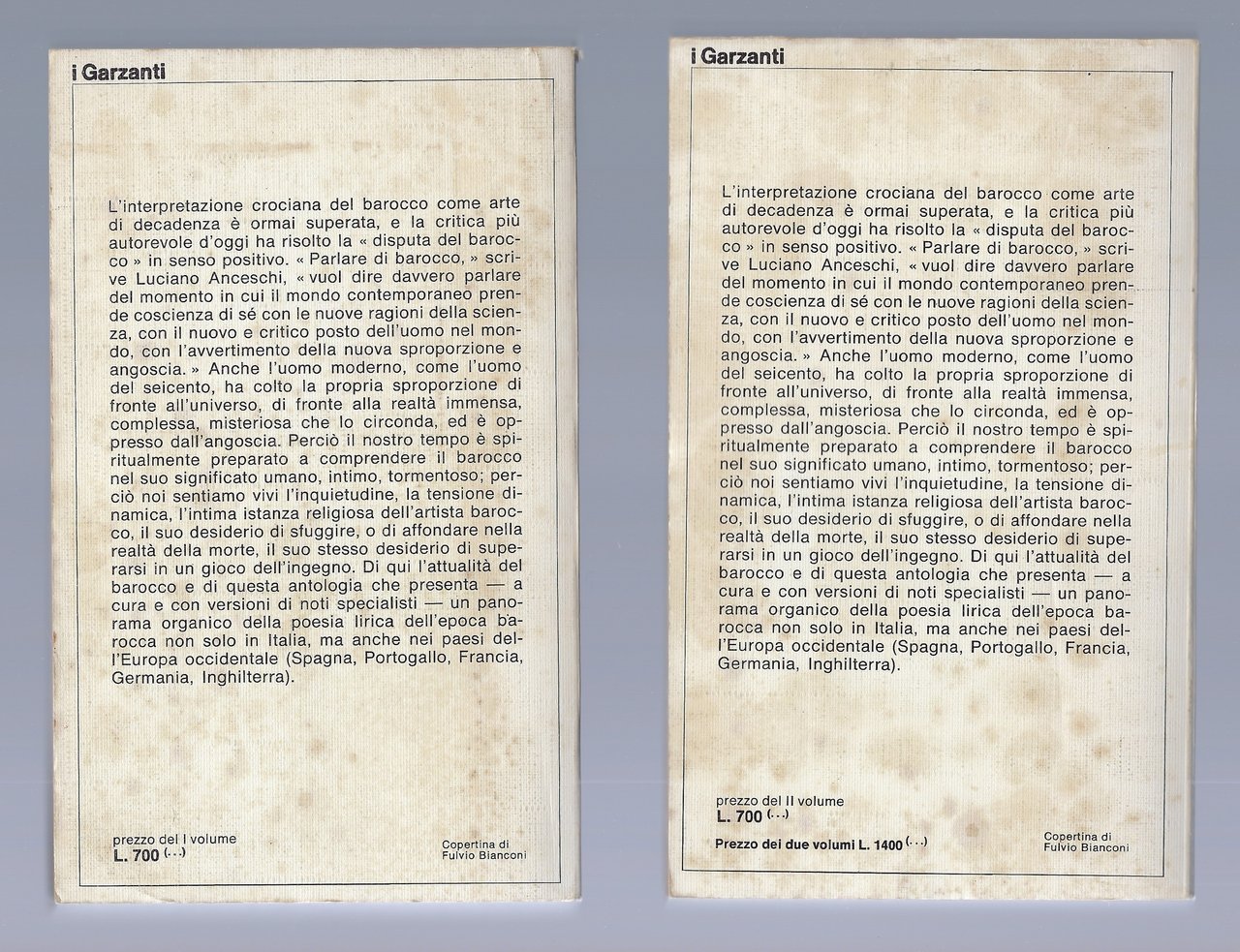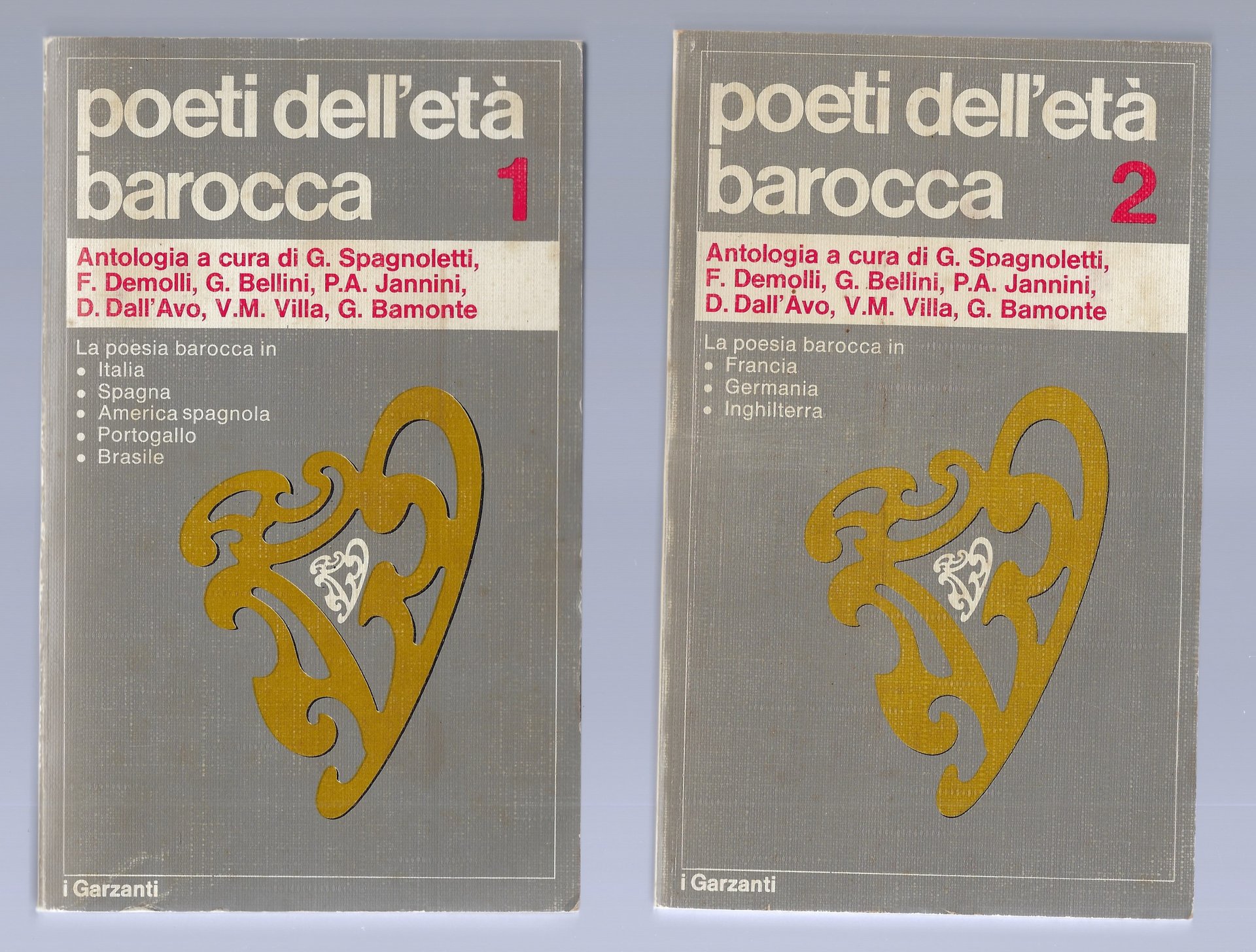 Volume 1 :"La poesia barocca in Italia, Spagna, America Latina, Portogallo e Brasile, con saggi introduttivi e versioni di Fabio Demolli, Giuseppe Bellini e P. A. Jannini.