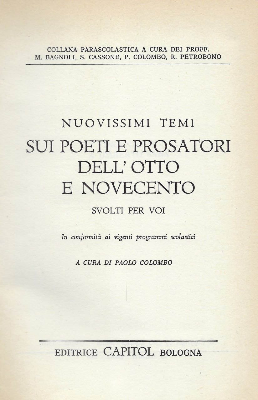 - Collana Parascolastica a cura dei proff. M. Bagnoli, S. Cassone, P. Colombo, R. Petrobono.