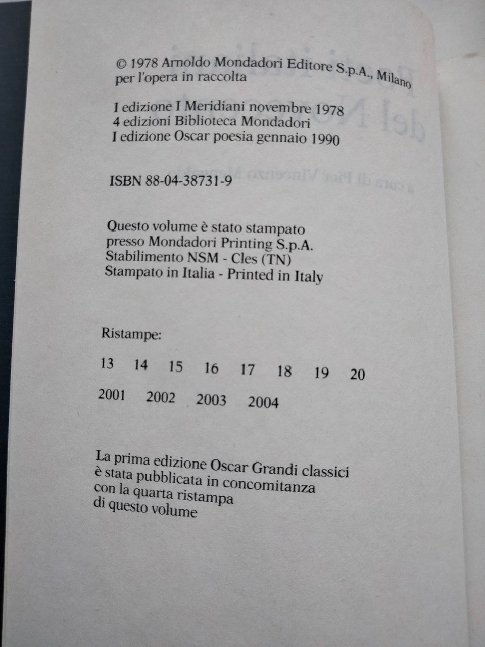 Poeti italiani del Novecento, Mondadori Oscar Poesia 1990