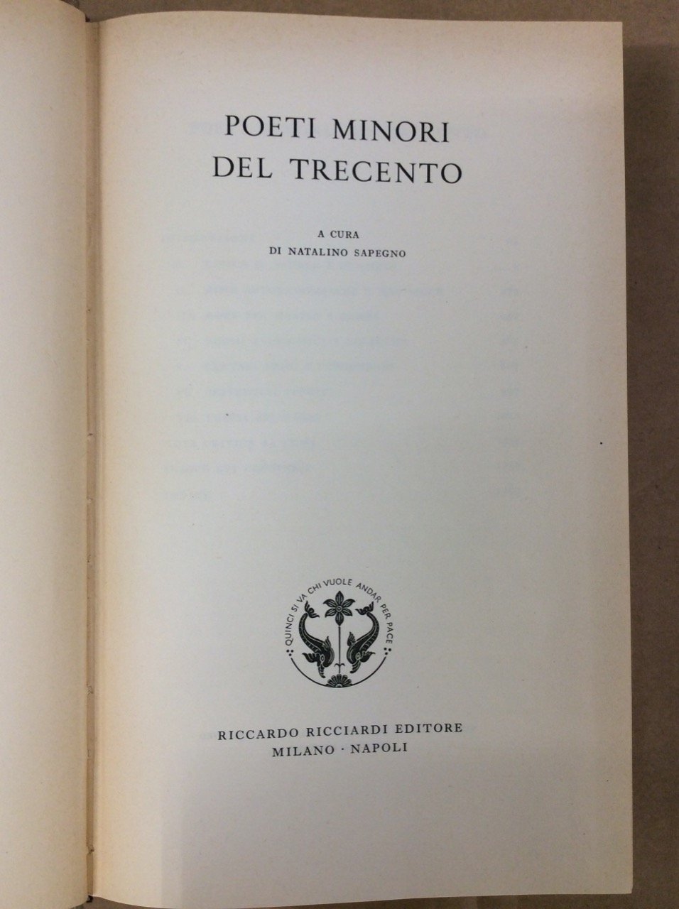 POETI MINORI DEL TRECENTO. - A cura di Natalino Sapegno.