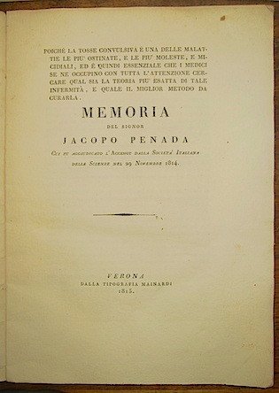 Poichè la tosse convulsiva è una delle malattie le più ostinate, e le più moleste, e micidiali. Memoria.