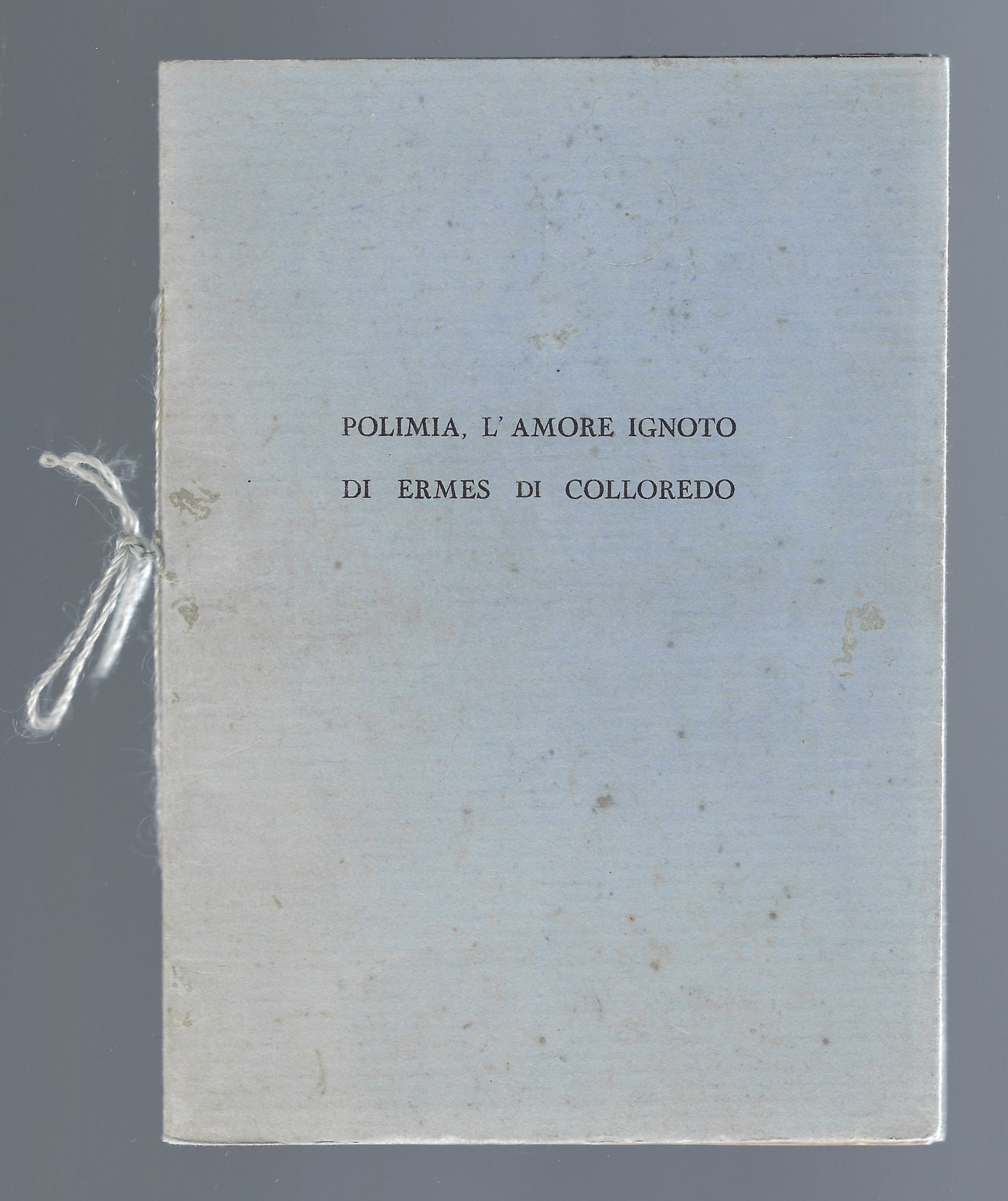 Brossura editoriale con titoli al piatto anteriore e cordoncino al dorso.