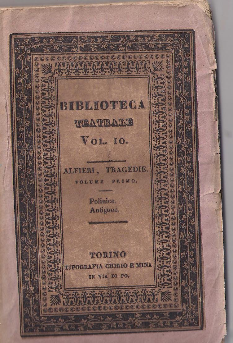 9,50 X 14,50, brossura editoriale, 180 pp, 1829, "Biblioteca teatrale economica ossia Raccolta delle migliori tragedie, commedie e drammi tanto originali quanto tradotti. Cl I Vol V, Torino Tipografia Chirio e Mina.