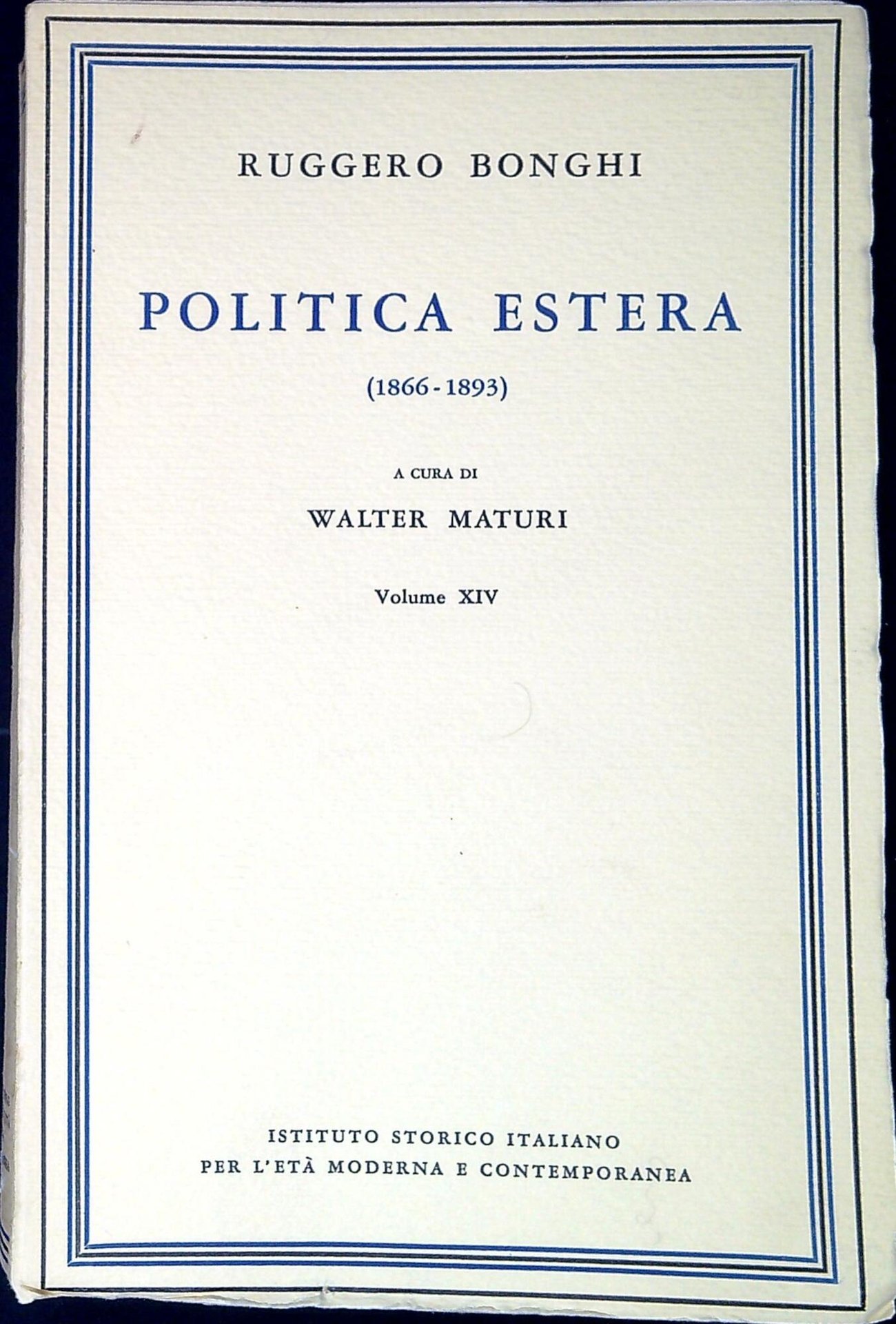 Ruggero Bonghi ; a cura di Walter Maturi Politica estera : 1866-1893. Roma, Istituto storico italiano per l'età moderna e contemporanea, 1958, XXXVII, 443 p. ; 23 cm. Opere di Ruggero Bonghi ; 14  (65927)