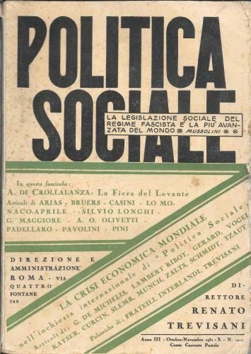 Politica Sociale - rivista mensile. Anno III n° 10 - 11