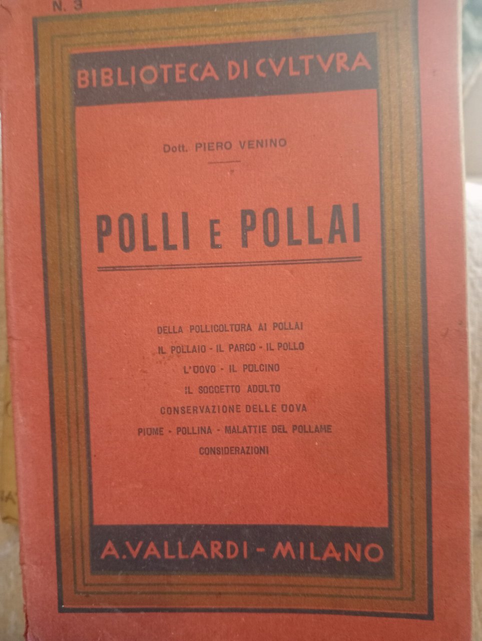 VOLUME IN DISCRETE CONDIZIONI. Della pollicoltura ai pollai - Il pollaio - Il parco - Il pollo - L'uovo - Il pulcino - Il soggetto adulto - Conservazione delle uova - Piume - Pollina - Malattie del pollame - Considerazioni. Collana: Biblioteca di cultura