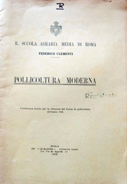 Pollicoltura moderna. Conferenza tenuta per la chiusura del corso di pollicoltura dell'anno 1926. Regia Scuola Agraria di Roma.