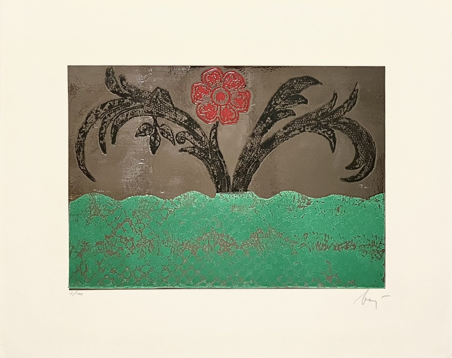 Acquaforte su fondino specchiato, es. 17/100, dal volume "I Fiori", firma dell'artista a matita.