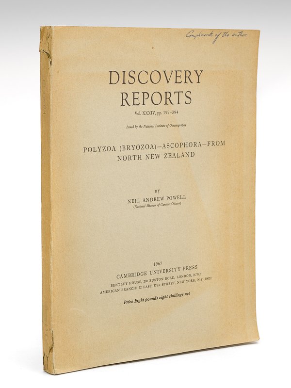 1 vol. in-4 br., Discovery Reports Vol. XXXIV, Cambridge University Press, 1967, pp. 199-394 avec 17 planches hors texte Inscribed by the auhor ("Compliment of the author"). Etat très satisfaisant (accroc restauré en coiffes, bon état par ailleurs).