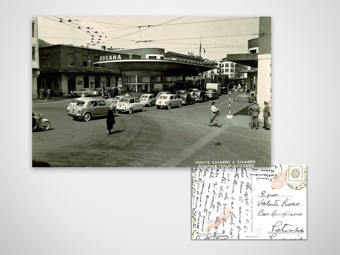 Cartolina Ponte Chiasso e Confine Italo-Svizzero - Viaggiata senza francobollo  Dimensioni 10x15cm