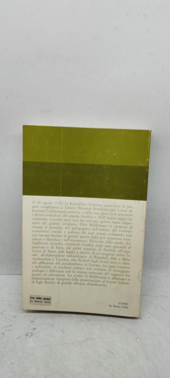 johann heinrich pestalozzi popolo lavoro eduazione egle becchi. , la nuova italia 1974 italiano, 323 °°