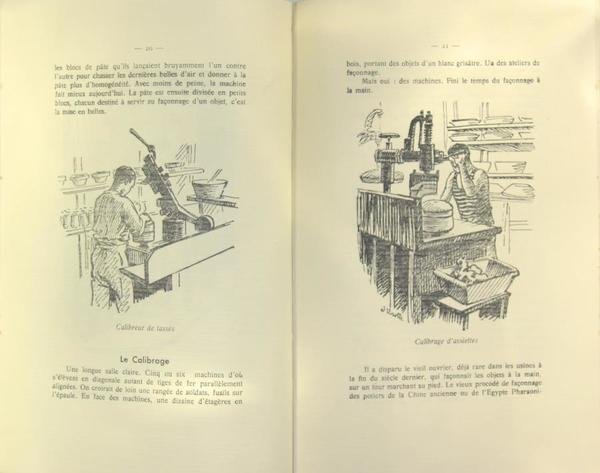 Imprimerie Rivet, Limoges, 1937. Petit in/4, plaquette brochée, couverture en carton souple gris, illustrations de Jean Virolle, 58 pages. Pocelaines de Limoges, faïencerie de Locmaria.