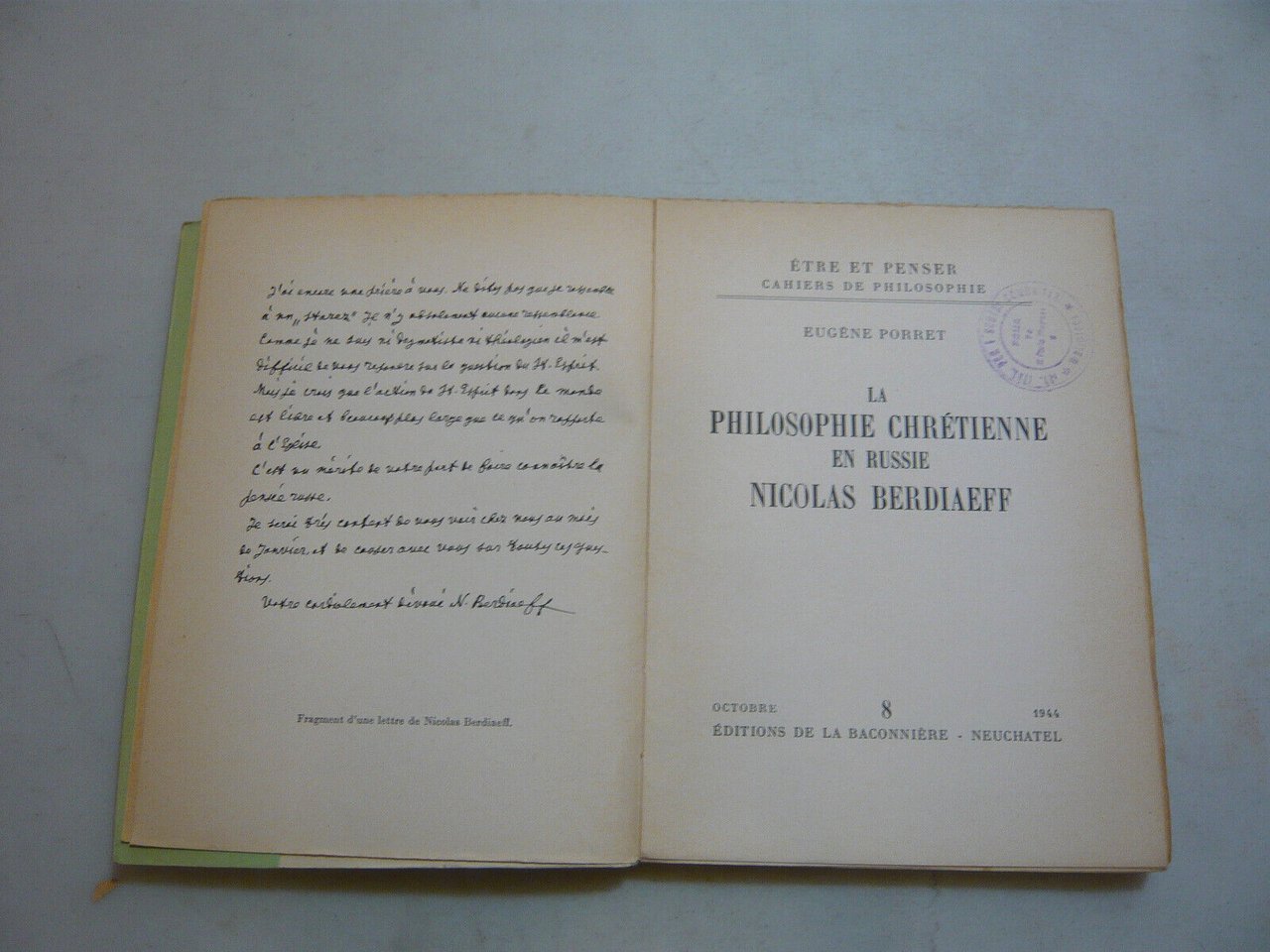 Porret,LA PHILOSOPHIE CHRETIENNE EN RUSSIE NICOLAS BERDIAEFF,Neuchatel(SUI),1944