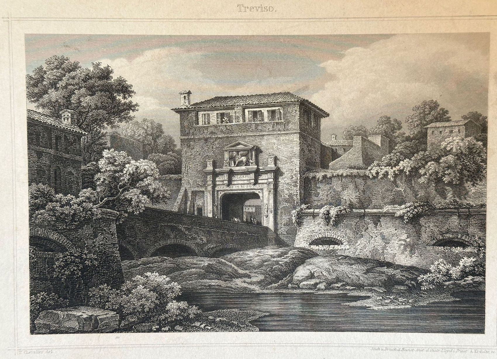 Veduta animata di Porta Altinia a Treviso del 1860 circa. AUTORE: A. Krauise su disegno di P. Chevalier TECNICA: Acquaforte DIMENSIONI FOGLIO: cm 19,5x25<BR>DIMENSIONI INCISIONE: cm 14,5x21 EPOCA: 1860 circa CONDIZIONI: Buone. Fioriture. Animated view of Porta Altinia in Treviso of 1860 circa. AUTHOR: A. Krauise after P. Chevalier TECHNIQUE: Etching LEAF DIMENSION: cm 19,5x25 ENGRAVING DIMENSION: cm 14,5x21<BR> DATE: 1860 circa CONDITIONS:Good conditions. Foxing