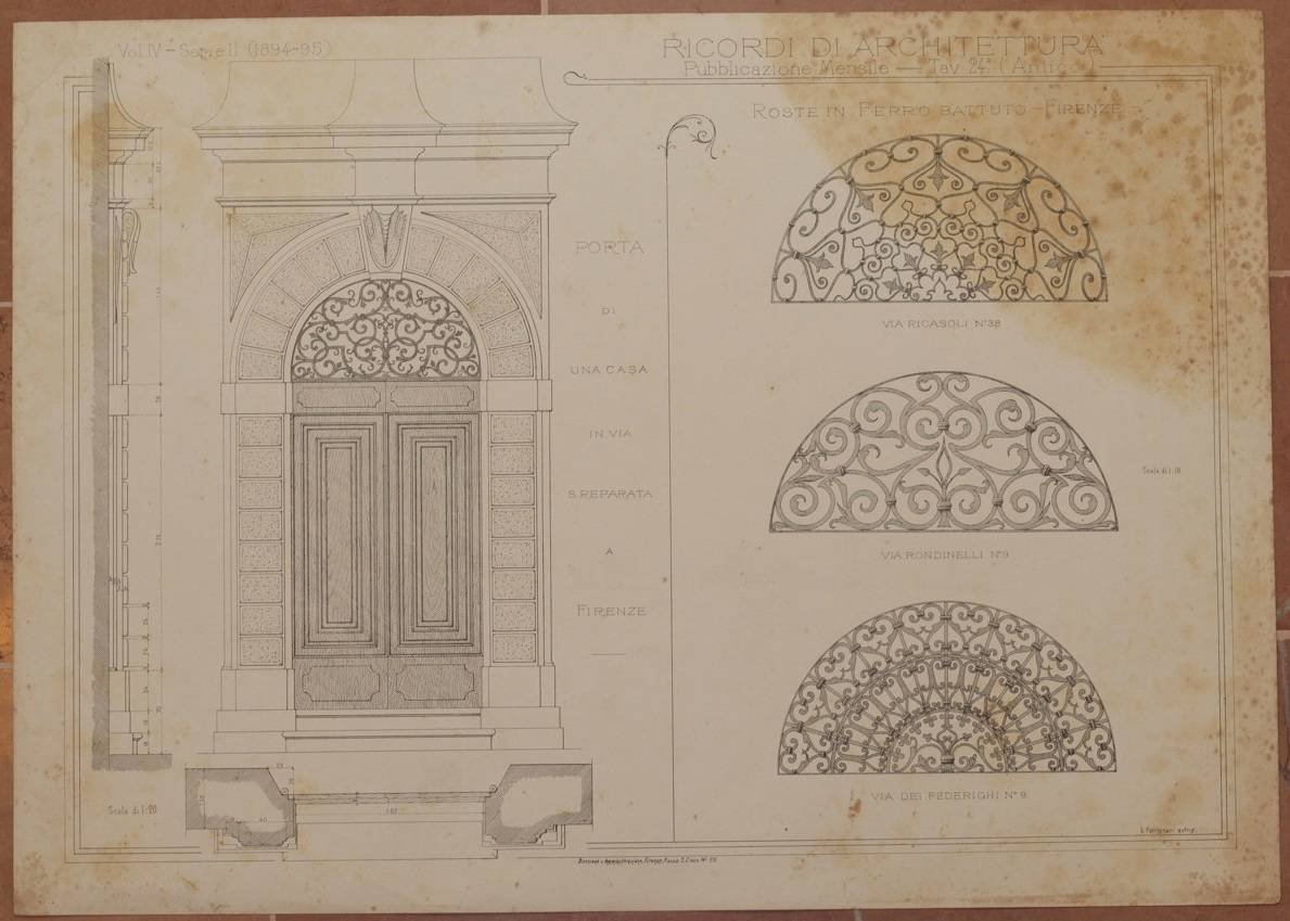 PORTA DI UNA CASA IN VIA S. REPARATA A FIRENZE ROSTE IN FERRO BATTUTO - FIRENZE VIA RICASOLI N° 38 VIA RONDINELLI N° 9 VIA DEI FEDERIGHI N° 9