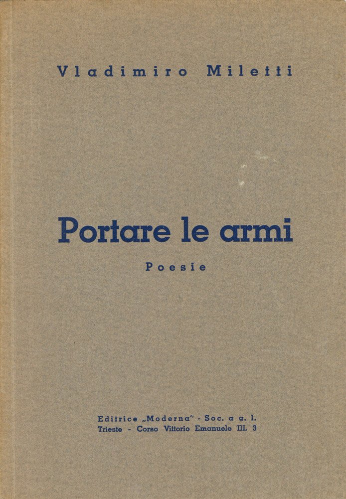 LIBROEdizione originale.Esemplare intonso in stato di nuovo.Raro. Versi di argomento bellico — tra cui la notevole CF 8091, dedicata al fucile e che ne porta per titolo il numero di matricola. Cfr. Cammarota, Futurismo, 326.4; Diz. Fut., p. 740a: «. liriche che saranno declamate da Marinetti nel corso di una serata futurista a Trieste nel 1941 (alla quale intervengono anche Sanzin e Crali)».