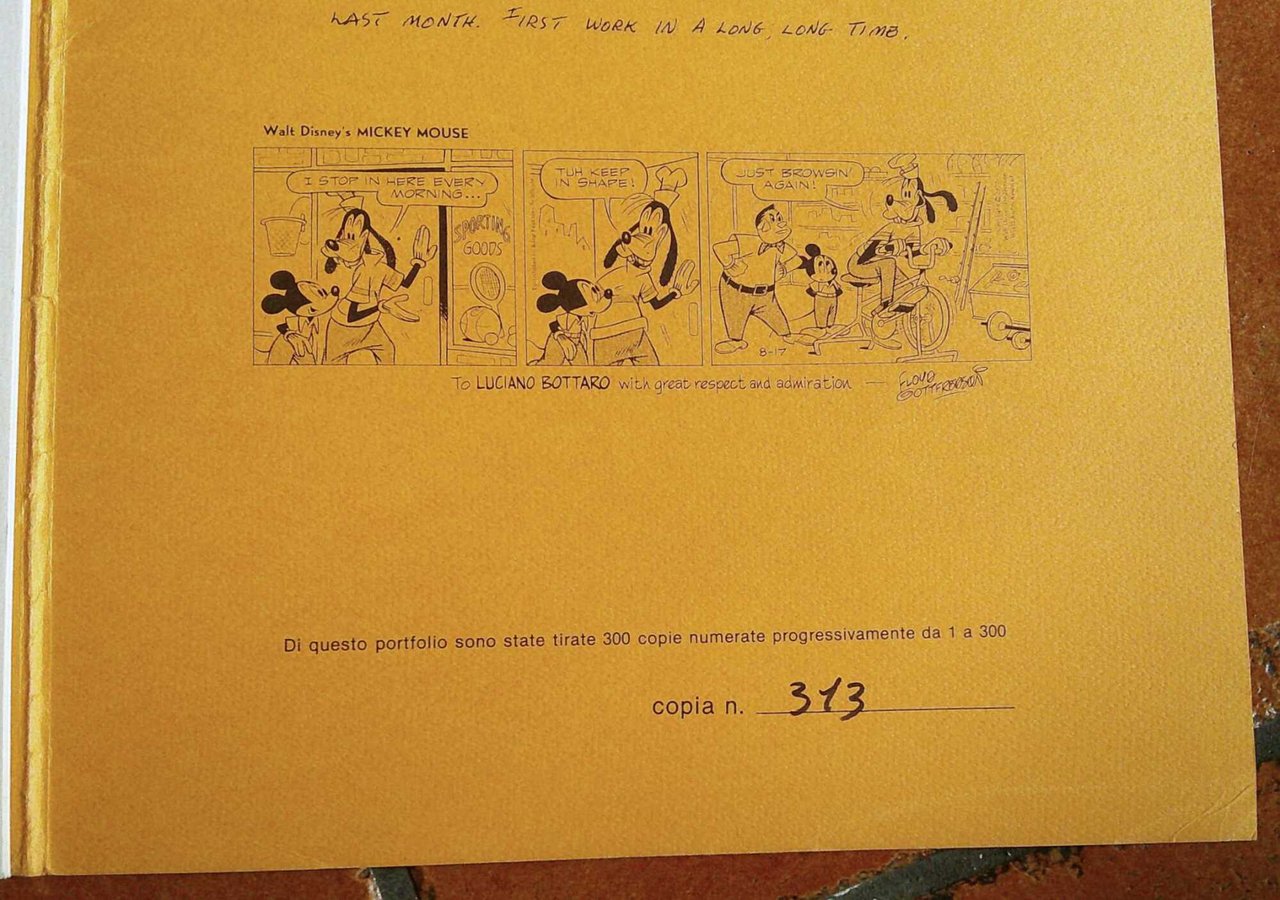 Portfolio di Pinocchio contenente 4 splendide tavole a colori illustrate da Luciano Bottaro. Tiratura Limitata a 300 esemplari, nostra Fuori Edizione N.313. Ed. Arci Comics - Modena, s.d. anni '80. Cartellina editoriale contenente le 4 tavole sciolte in cartoncino spesso. Cartellina: 48x54; Tavole: 46,5x53,5. Rara e in Ottimo stato. , Ottimo (Fine)