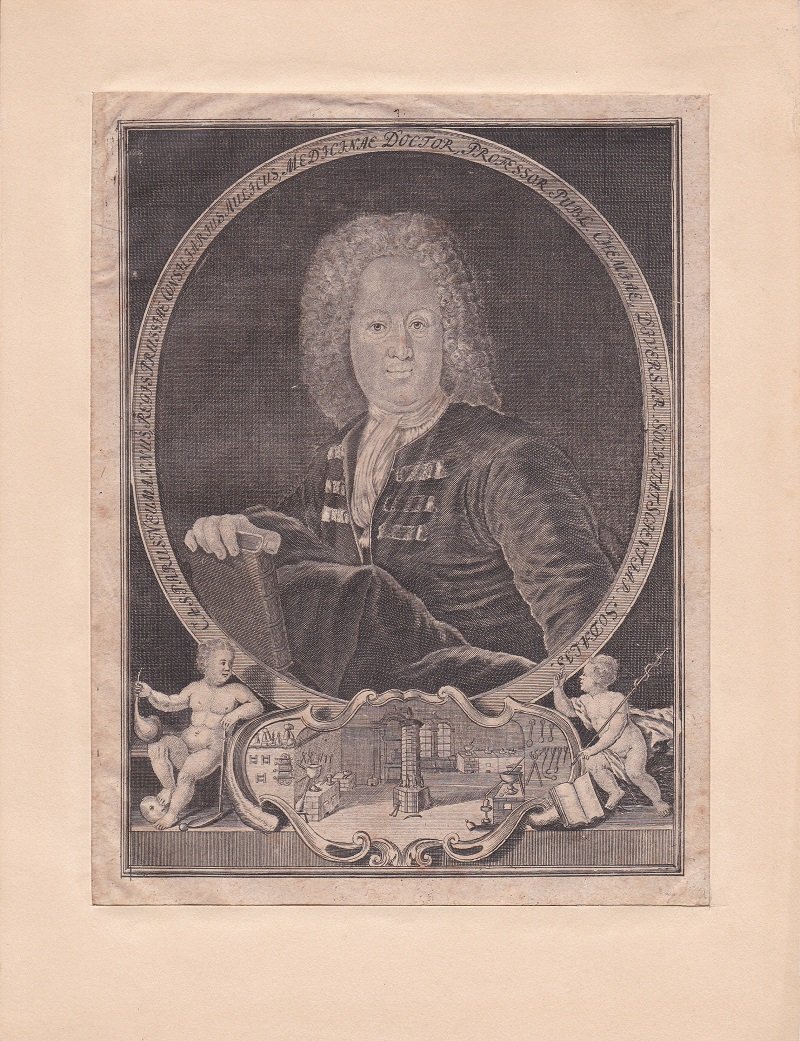 Größerformatiges Porträt (Original-Kupferstich) des Chemikers und Apothekers Caspar Neumann. Vgl. auch Ferchl 381.