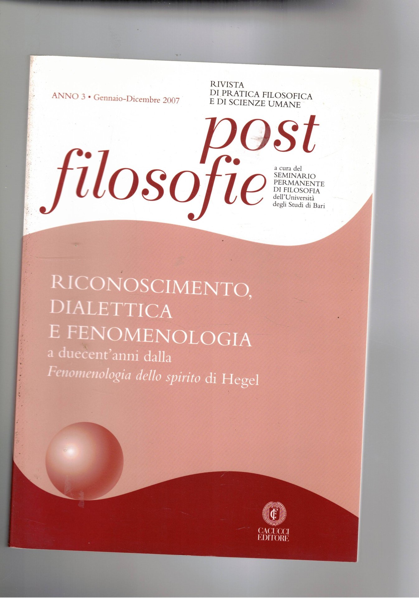 Post-filosofiaa, rivista di pratica filosofiva e di sscienze umane. anno 3° gen-dic. 1007. Riconoscimento, dialettica e fenomenologia a duecent'anni della Fenomenologia dello spirito ddi Hehel.
