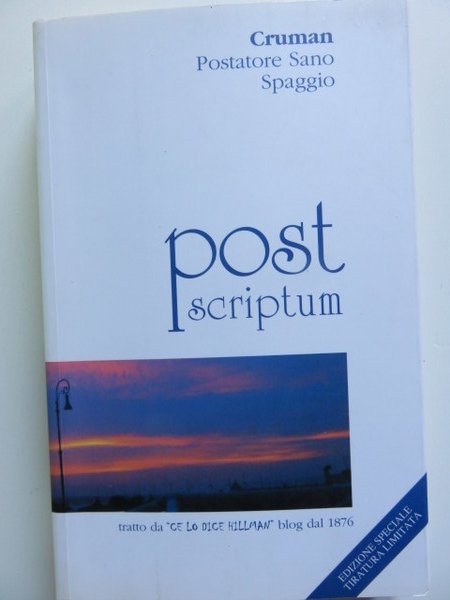 Post scriptum. Tratto da "Ce lo dice Hillman"blog dal 1876 edizione speciale a tiratura limitata