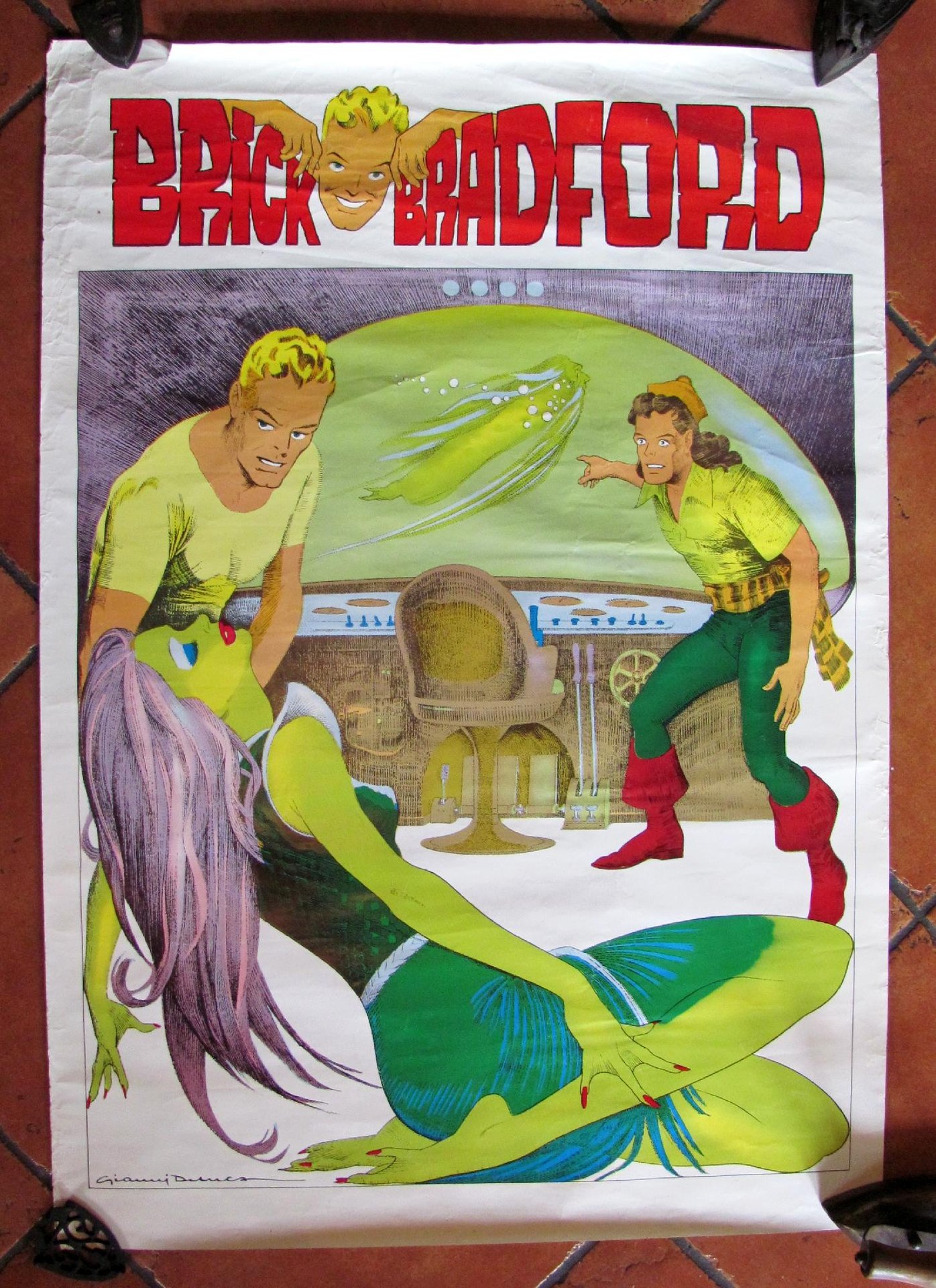 Poster Brick Bradford illustrato da Gianni De Luca. Manifesto 100x70 - anni '70 con leggere imperfezioni ai margini esterni. Originale, Raro e in Buonissimo stato.