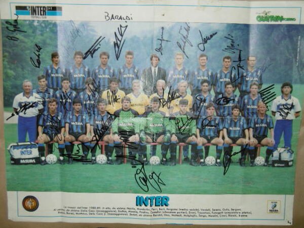 Poster manifesto della "rosa" dell'Inter 1988-89 con le firme dei giocatori