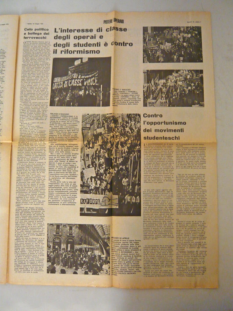 «Potere Operaio», venne pubblicato settimanalmente a partire dal settembre 1969
