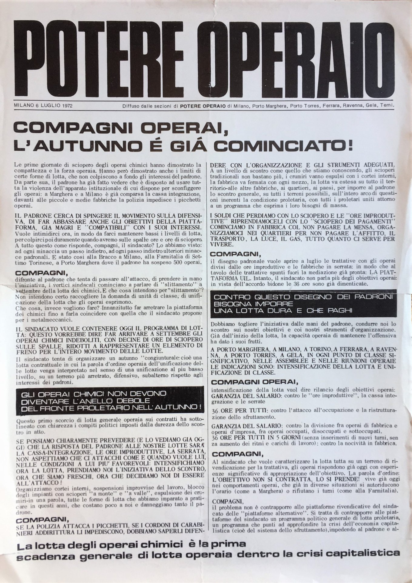 Potere Operaio. 6 luglio 1972