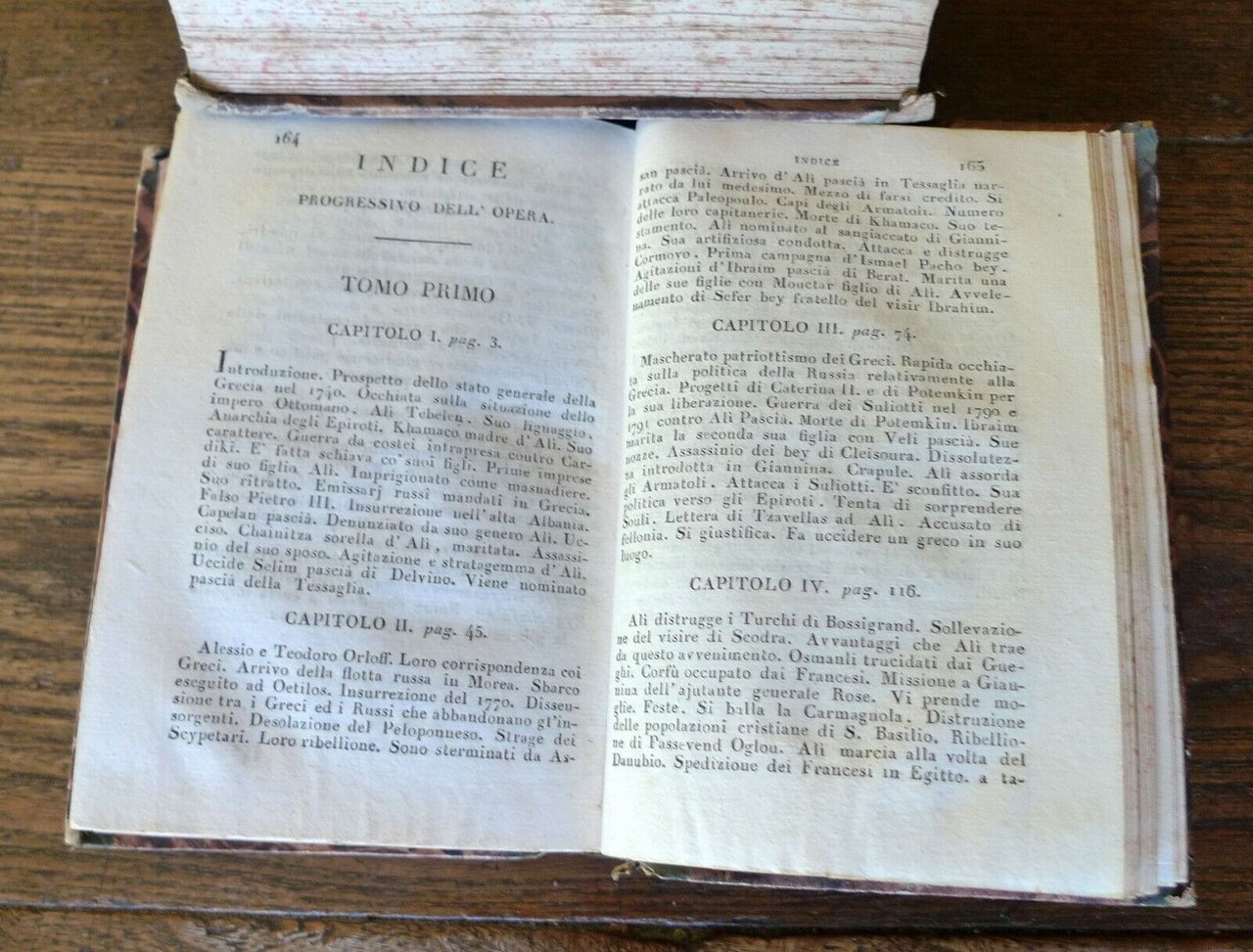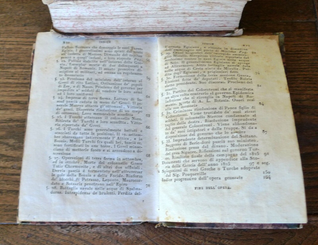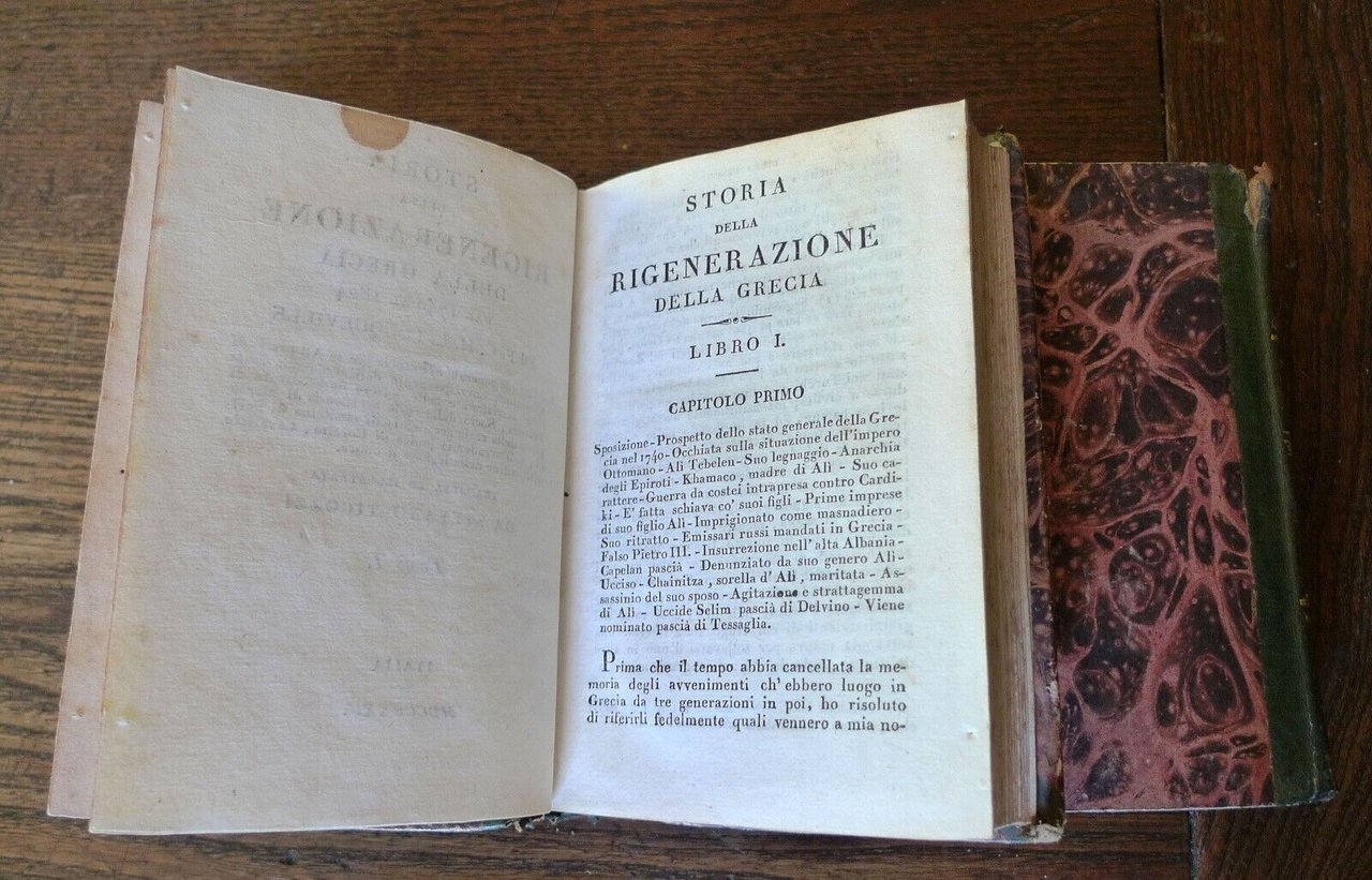 ISTORIA DELLA RIGENERAZIONE DELLA GRECIADAL 1740 AL 1824DI F.C.H.L. POUQUEVILLE,TRADOTTA E ILLUSTRATA DA STEFANO TICOZZI.TOMI I-X.[10 TOMI RILEGATI IN 5 VOLUMI, OPERA COMPLETA].ITALIA MDCCCXXV-MDCCCXXVI (1825-1826),senza informazioni editoriali,copertina rigida, rilegatura coeva in mezza pelle,14x9 cm., pp.229; 255; 220; 222; 226; 227; 249; 191; 234; 211,tagli a spruzzo,con una illustrazione all'antiporta del tomo I,peso: kg.1,2