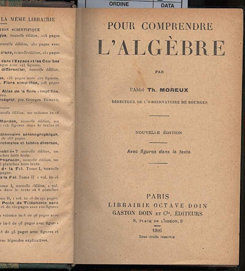 In 16, leg. amatoriale mz. pelle con ang. piatti marmorizzati, nervi, filetti e tit. in oro al dorso, pp. 109, nouvelle edition avec figures dans le texte; minime abrasioni e bruniture al dorso, internamente solo ordinari segni del tempo.Luogo di pubblicazione ParisEditore DoinAnno pubblicazione 1926Collana Bibliotheque d'Education ScientifiqueMateria/Argomento Scienze, Matematica, Algebra ***Due to bureaucratic reasons, books dated over 70 years old cannot be immediately exported, please contact us before placing the order.***
