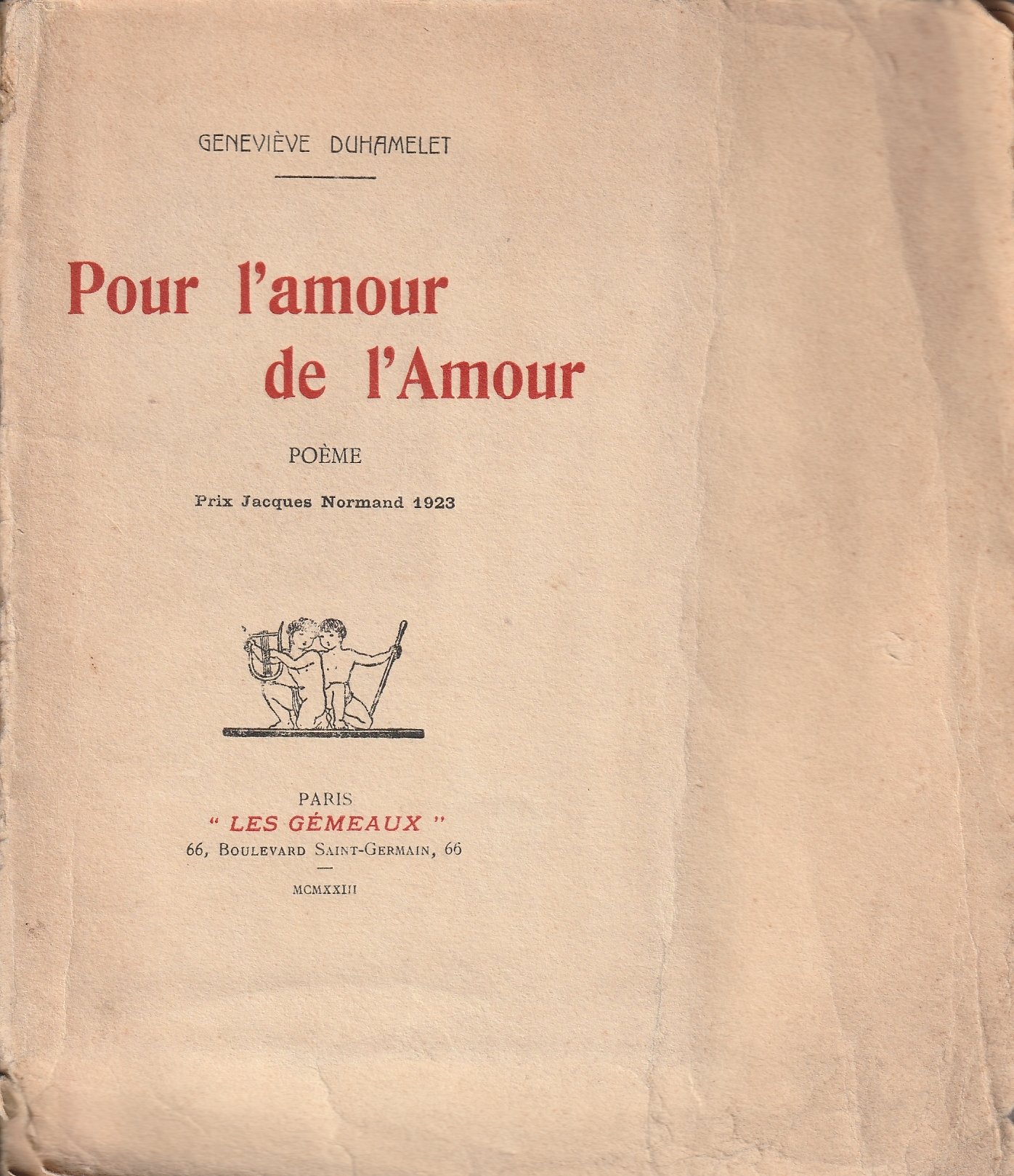 Pour l'amour de l'Amour. Poème. Prix Jacques Normand 1923