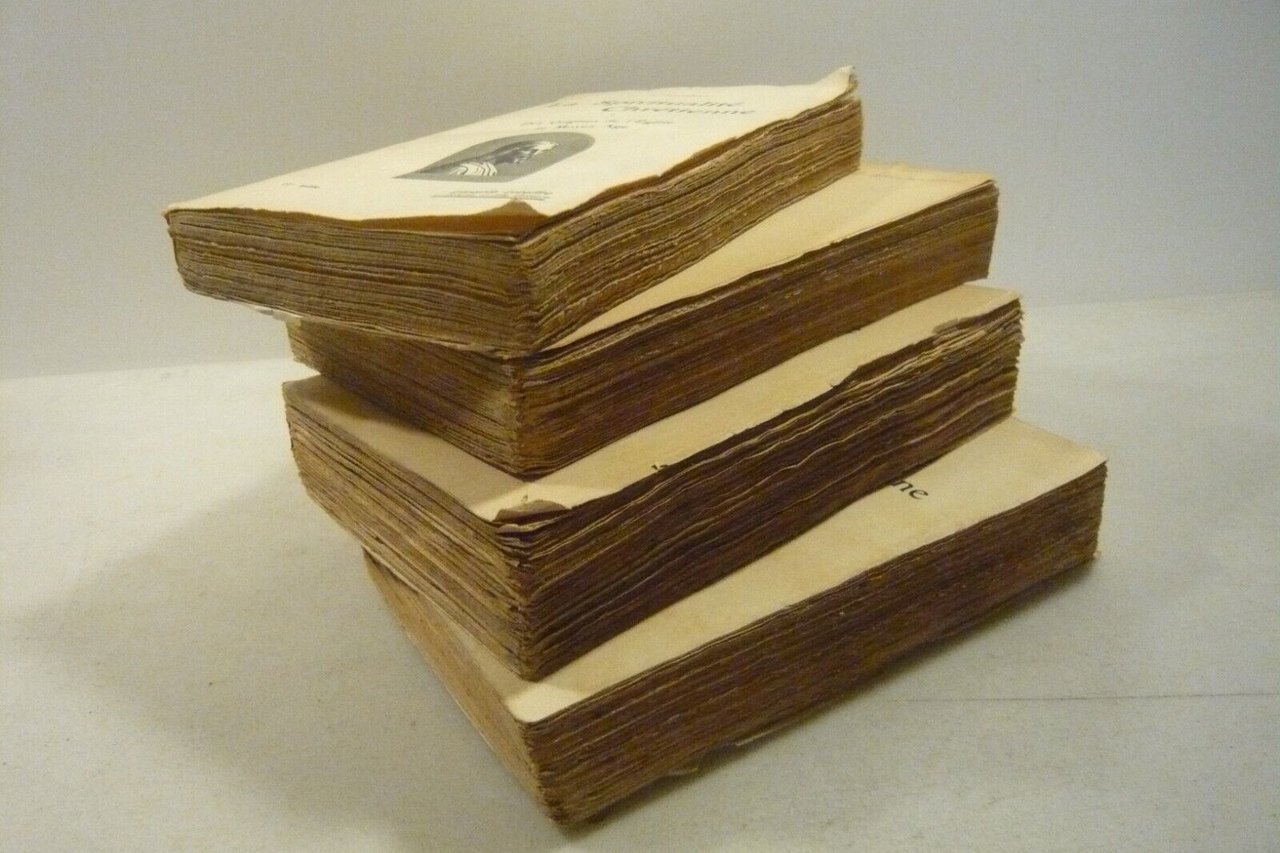 CONDIZIONI DEI LIBRI:Le copertine e le pagine di tutti e 4 i libri sono ingiallite dal tempo e leggermente rovinate ai lati. Le pagine sono comunque in ottime condizioni e in tutti i libri, le prime 2/3 pagine, non sono state aperte. Nel complesso i libri sono in buone condizioni e segnati solo dal tempo.