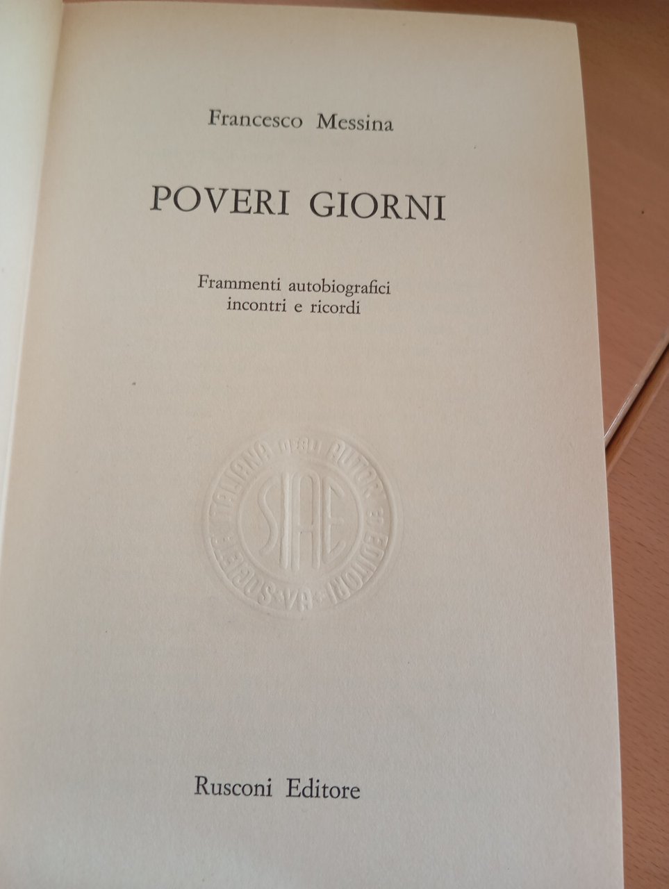 Poveri giorni, Francesco Messina, Rusconi, 1974