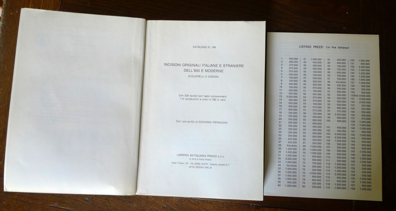 PRANDI CATALOGO 198 1988 INCISIONI ORIGINALI ITALIANE,STRANIERE[arte acquerelli