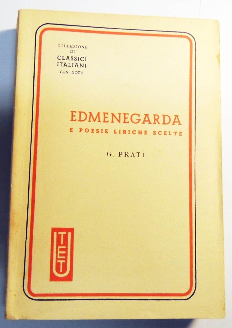 Giovanni Prati, Edmenegarda e poesie liriche scelte, a cura diS. Multineddu, Unione tipografico-editrice torinese, Torino 1944, pp.312, cm 17, br. ed. Collana Collezione di classici italiani con note, n. 53. Lievi segni del tempo allabrossura, per il resto perfetto.
